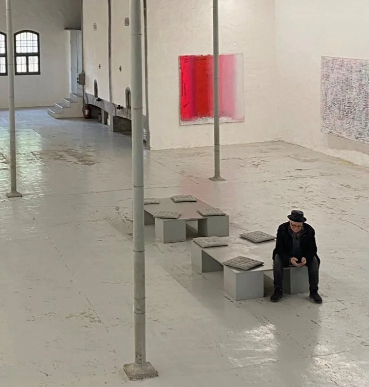 In my latest series of paintings, drawings and painting inspired sculptures, I explore the figure of the contemporary man—this contemplative being, suspended between weariness and the desire to escape. My characters seem to dream of a horizon beyond the ordinary, a mental territory that might allow them to elude the crushing weight of everyday life, junk food, automatisms, and routines that numb their vital impulse.